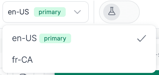 To add or update a translation, switch to your target locale, edit the content, and save. The badge will automatically update from grey to orange to confirm your new translation.