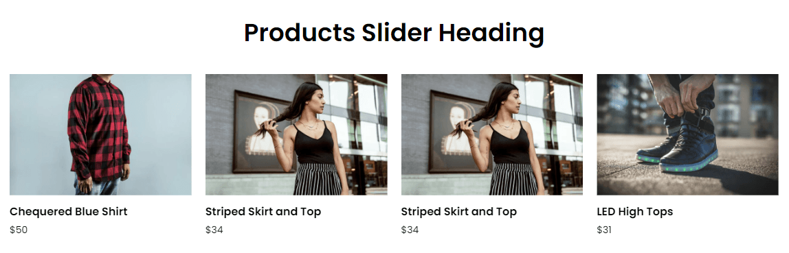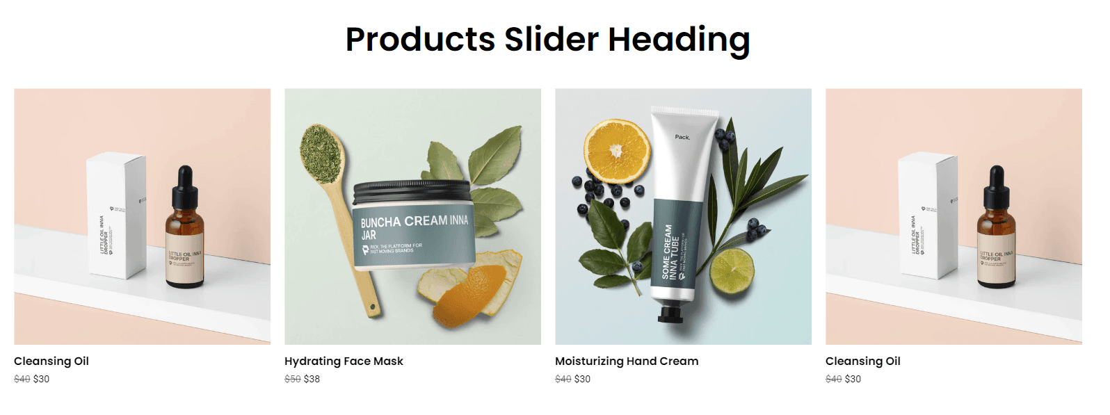 The Products Slider section is a dynamic slider designed to showcase products based on their handles.