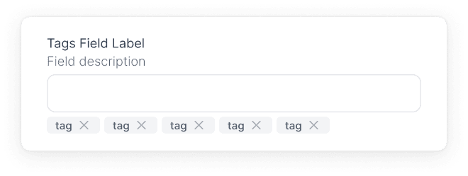 This field will render an input where you can create tags by inputting your tag and hitting enter. The return value will be an array of strings.